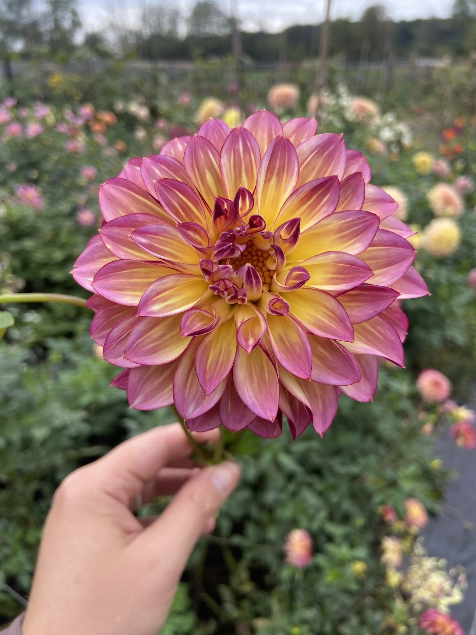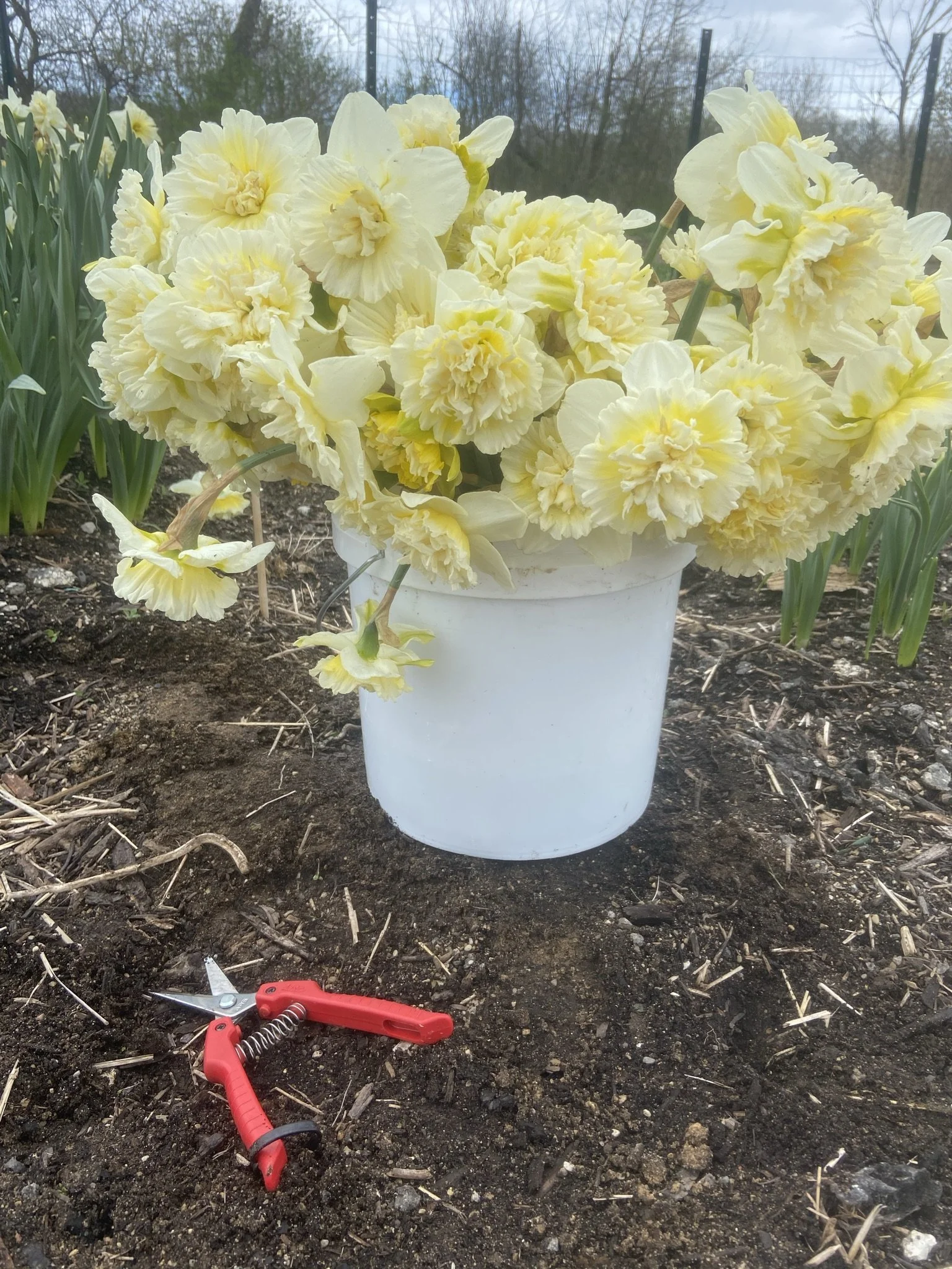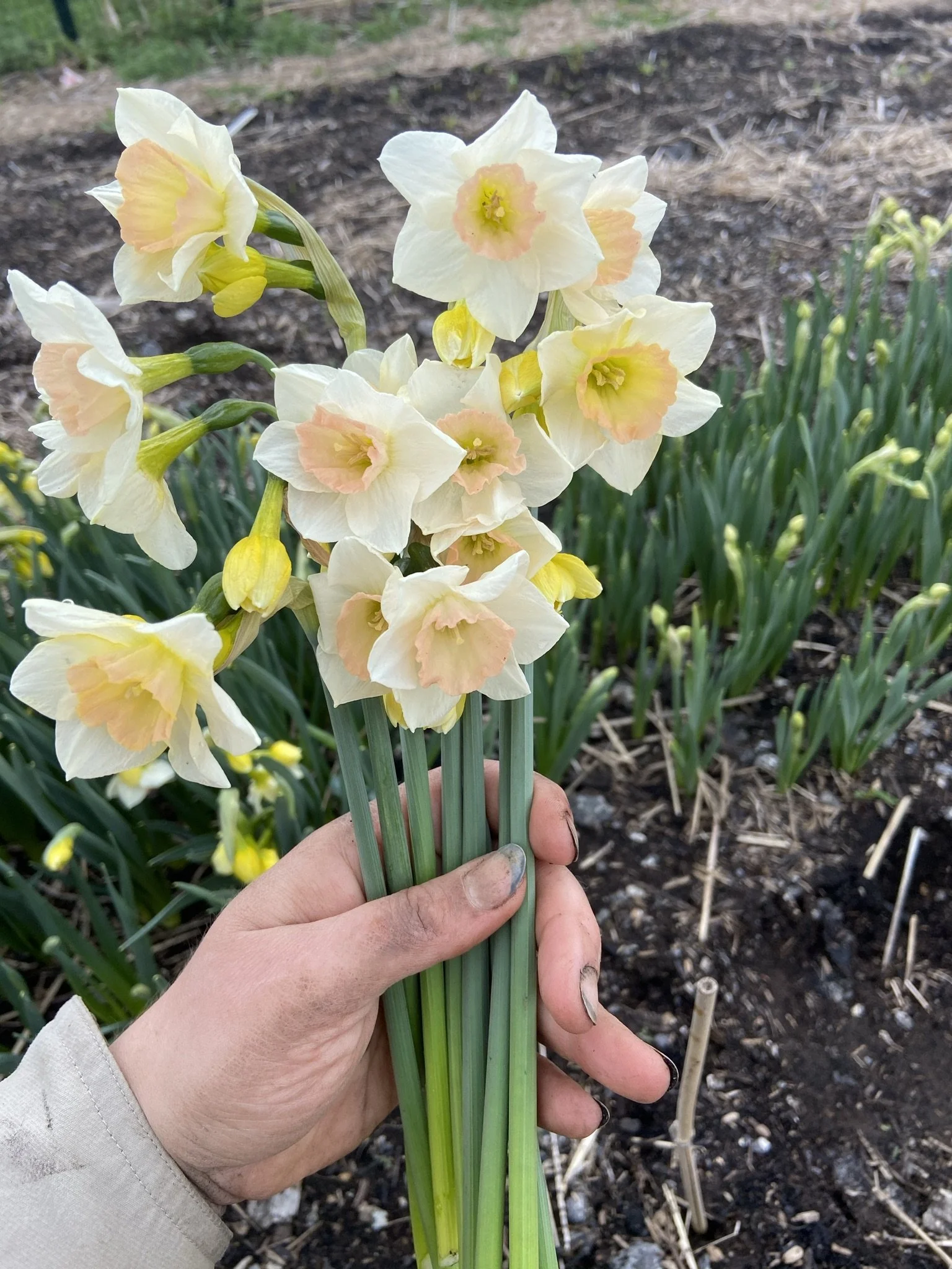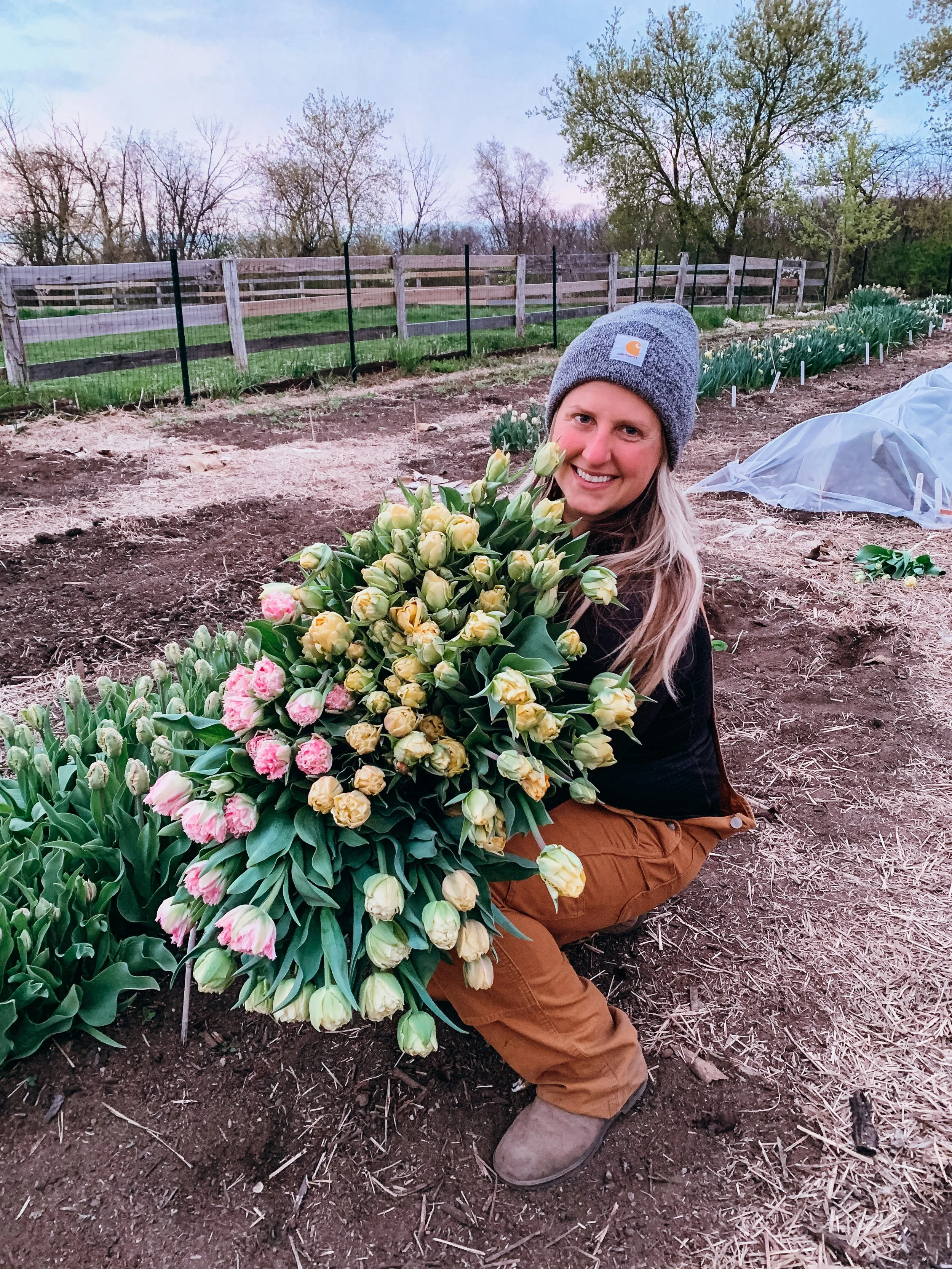 Varieties we are growing include tulips, daffodils, dahlias, ranunculus, yarrow, Anemones, peonies, cosmos, zinnias, statice, Strawflowers, cress, peonies, celosia, Gomphrena, and pumpkins, and much more. You can buy our flowers from our online shop.