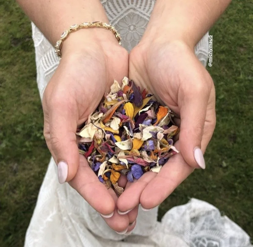 My name is Michelle and I am the Flower farmer, Floral designer and owner of growth Farm + Floral. When planning my own wedding in 2019 my adventure with flowers began. I transformed the entire back seat of my car into a drying rack to dry flowers from my small backyard garden to turn into flower confetti. Playing around with flowers brought me so much happiness and provided fun during a usual stressful time. This is when I knew I needed more flowers in my life.
